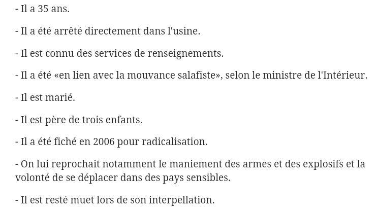 Den anholdte, der er identificeret som Yassin Salhi, en “normal muslimsk salafist” ifølge hans kone, der er interviewet her, var